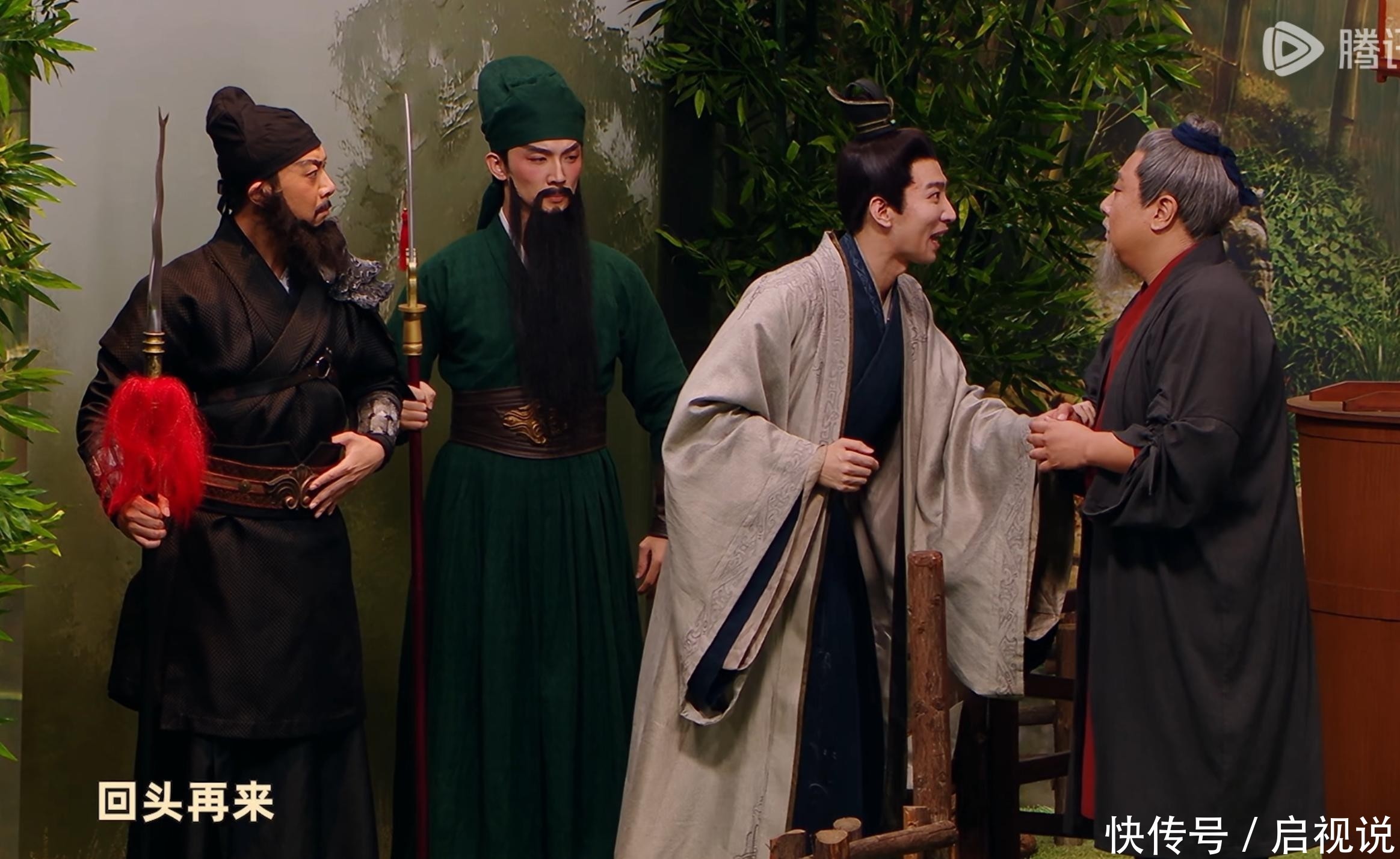 38. 《三顾茅庐》里,张弛饰演的刘备说“回头再来”,随即转身又出现;这一笑点早在《悟空》中就已使用过。