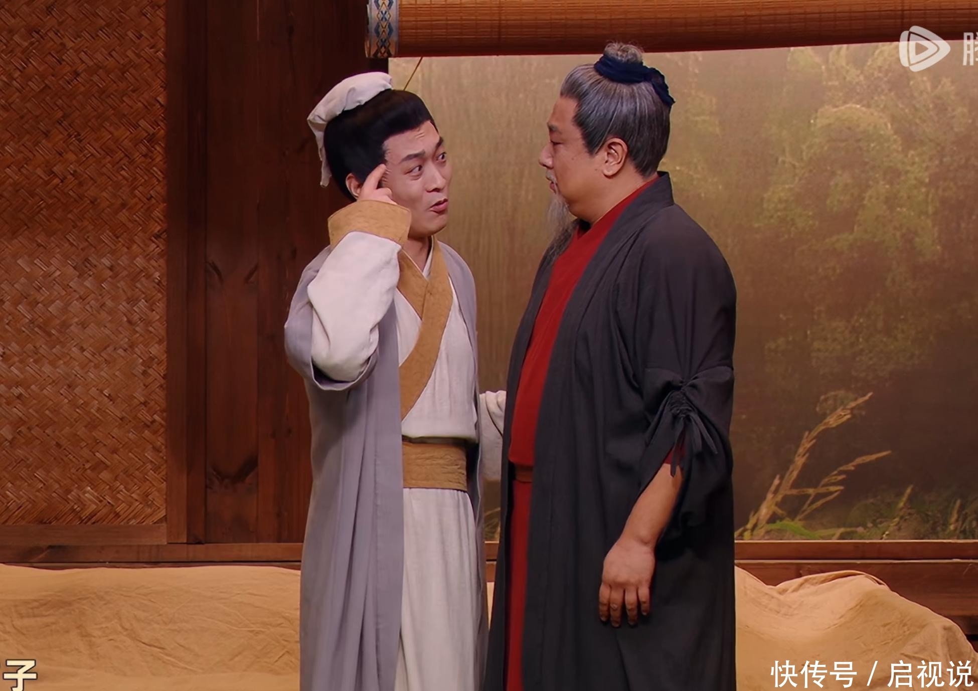 39. 叶浏与蒋龙争抢孙悟空角色,张弛一句“回头再说”,两人立刻完成转体动作,形成callback。